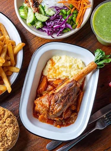 Beef patty, bacon, cheese, beetroot, onion, lettuce, tomato, honest sauce, and choice of tomato or BBQ sauce.